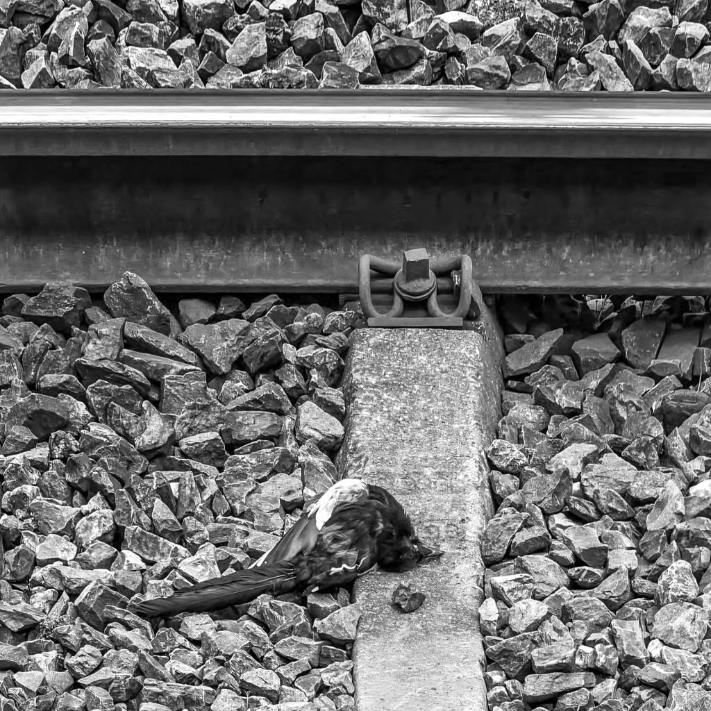 No se trata de ilustrar la novela, sino de invocarla. Las piernas que caminan sobre tierra seca, el insecto inmóvil, la cruz del cementerio cubierta por útiles de limpieza, la jaula vacía, el pájaro muerto en las vías del tren… son fragmentos de un mundo que resiste en silencio. Un mundo donde la inocencia no es virtud, sino condena.