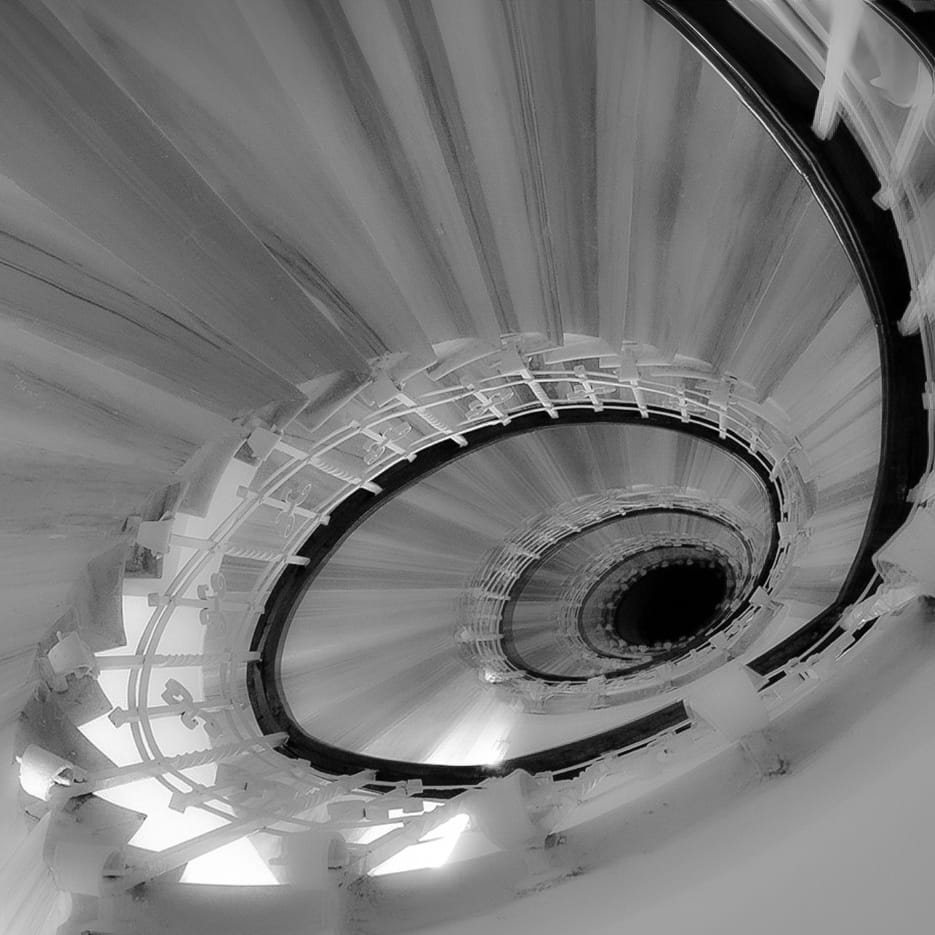 La espiral es forma, símbolo y recorrido. En esta serie, Marcos Fernández González nos invita a habitar el giro: desde el caparazón de un caracol hasta las escaleras que se enroscan en bibliotecas, patios y viviendas. Las imágenes, todas en blanco y negro, revelan una arquitectura del tiempo, donde cada curva es memoria, cada sombra es tránsito.
