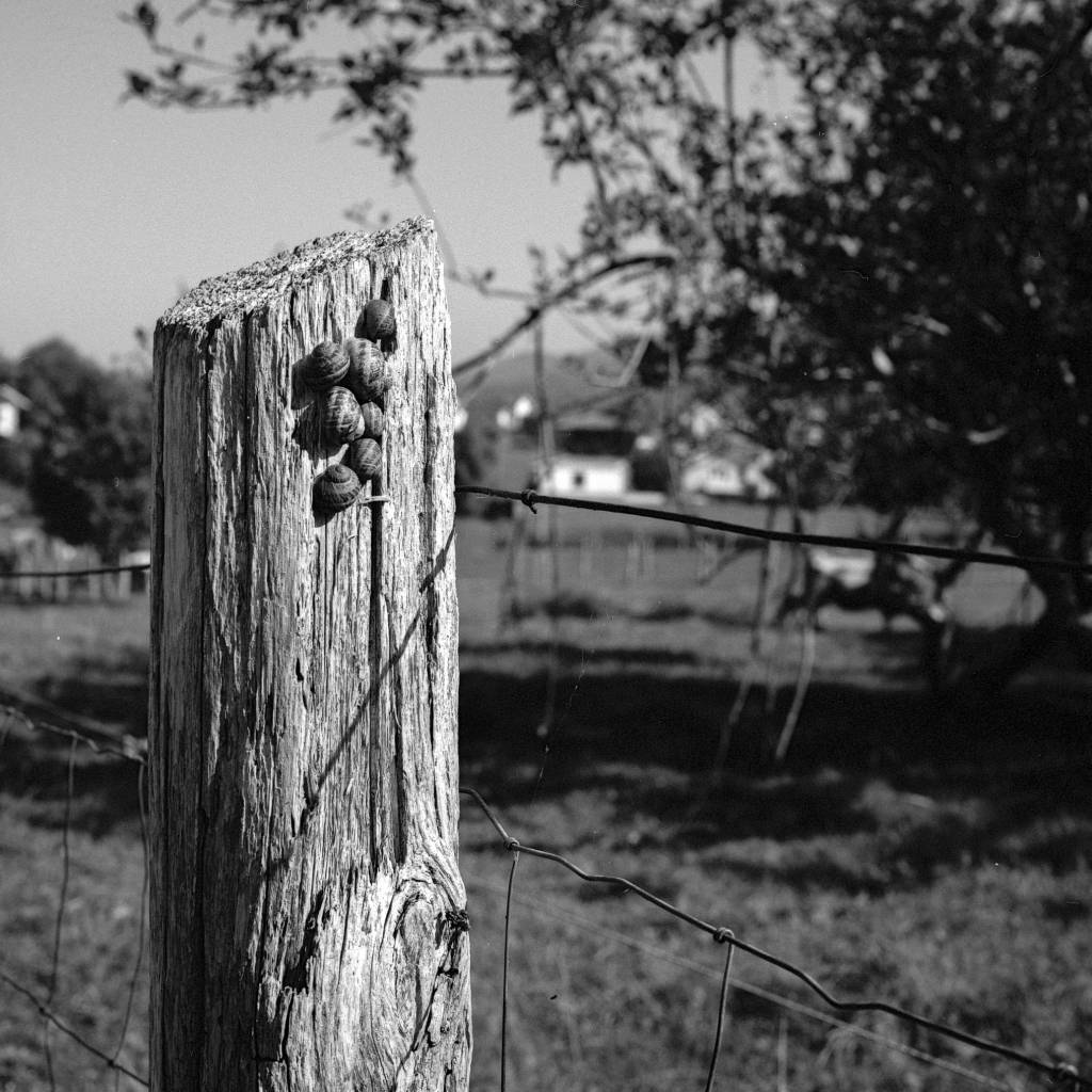 El caracol aparece como criatura y como concepto: lento, resistente, portador de casa. Las escaleras de caracol, por su parte, nos elevan y nos hunden, nos sitúan en el vértigo de lo vertical. Entre ambas formas, se despliega una poética del movimiento circular: laberintos, cercas, portones, cuerpos en tránsito. Todo gira, todo se repite, pero nunca igual.
